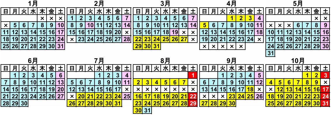 | ×印の宿泊日はゴルフパック料金の設定除外日(ご希望の場合はお見積り致します) |