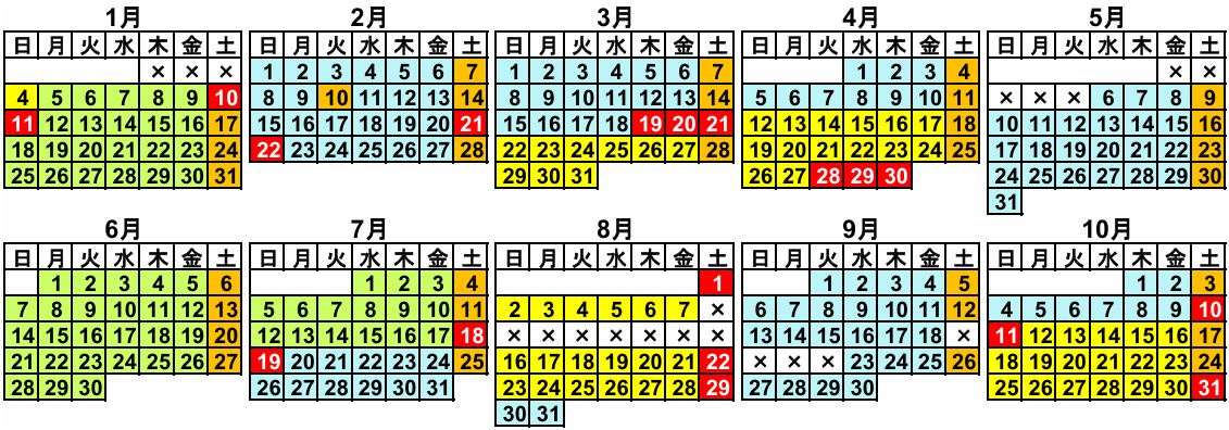 | 1月~3月 | 4月~10月 | ||||||||||||