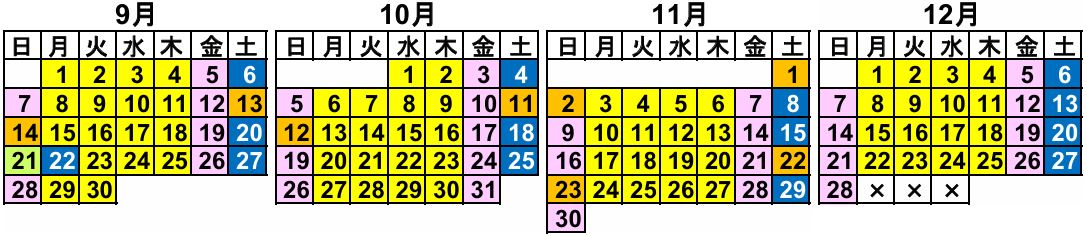 9/1~11/30 | 12/1~12/28 | ||||||||