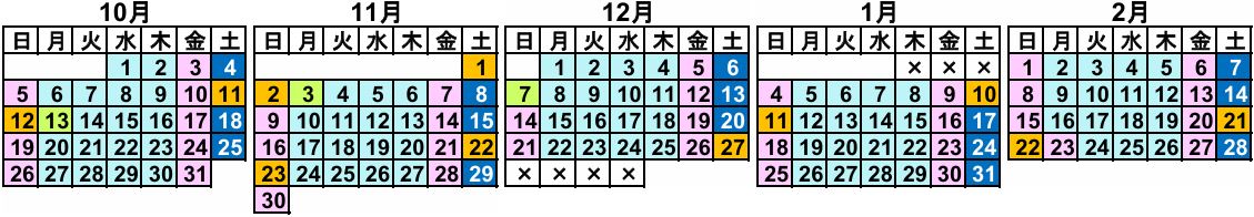 <セルフ営業日について> 10月(6日・14日・21日・27日) 11月(4日・10日・18日・25日) 12月(2日・8日・16日・23日) 1月(5日・13日・20日・26日) 2月(3日・9日・17日・24日) 上記のセルフ営業日は基本料金から3,000円引(10月~12月)・1,500円引(1月~2月)致します ただしスループレイ(昼食なし)となります |